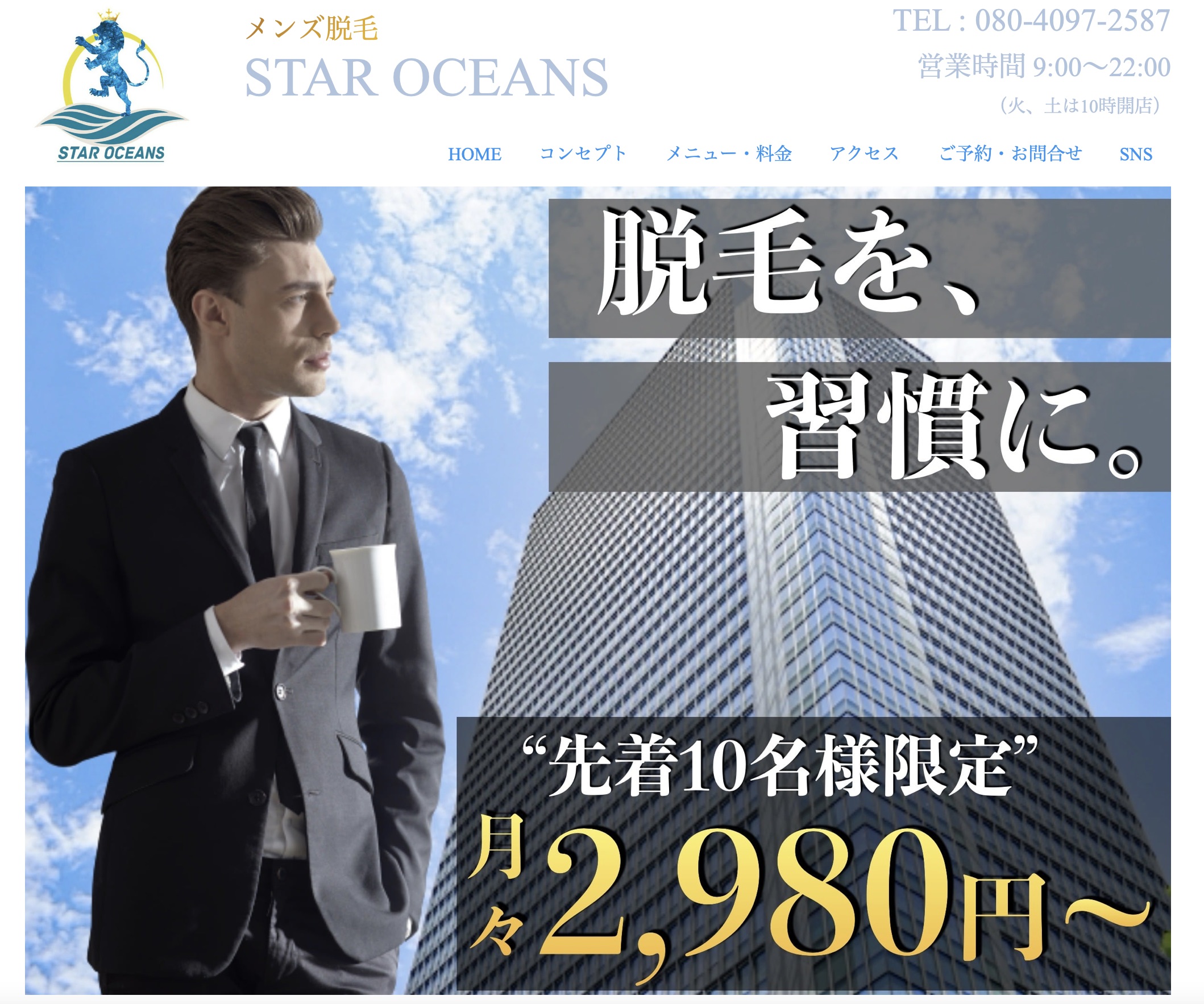 メンズ脱毛 STAR OCEANS(スターオーシャンズ)は男性専門の脱毛店です。